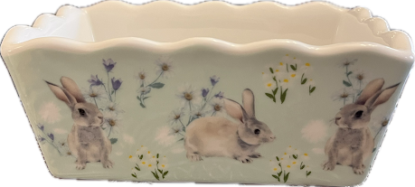 Introducing Bunnies - the perfect addition to any Easter party! This set includes a charming teacup and saucer, mini cupcake stands, small bowls, and mini loaf pans.  All with cute bunny designs. Celebrate the season with these adorable and limited edition pieces.