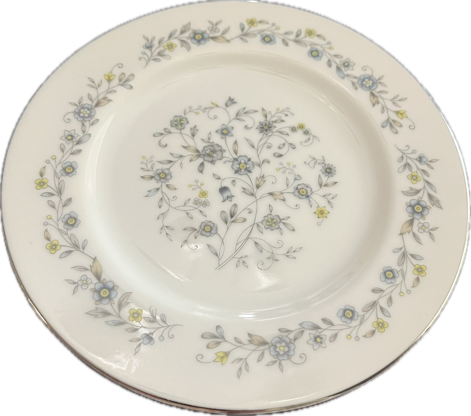 Elevate your table setting with Chantilly by Acsons pattern, featuring a delicate blue and gray floral design accented by subtle leaves and refined platinum trim. This elegant piece combines classic design with expert craftsmanship, perfect for serving bread and butter or desserts at formal dinners or special occasions. Its timeless style enhances any china collection, offering both beauty and functionality in one exquisite plate.