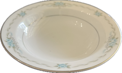 Elevate your table setting with Corsage by Style House featuring delicate blue roses and a sophisticated gray vine accented with silver trim. This elegant pattern combines classic floral design with refined metallic detailing, perfect for adding a touch of grace to any dining occasion.