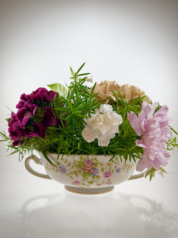 Elevate your table setting with our Delicate Blooms Floral Arrangement. Each arrangement features a vintage tureen design and is carefully arranged with seasonal flowers, creating a unique and stunning display. Price may vary based on flower selection.