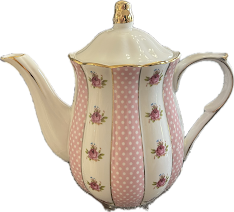 The elegant Pink Dots Rose Bud by Grace's Teaware features delicate pink dots and roses, accented with gold trim. Perfect for a sophisticated tea party, this teapot is sure to add a touch of grace and beauty to any occasion.