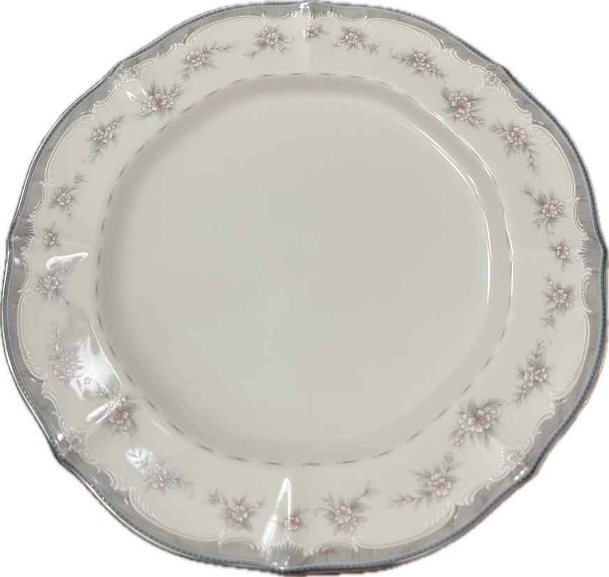 The Traviata by Noritake pattern features elegant pink and white flowers, a stylish gray border, and a delicate scalloped design. Crafted with expert precision, this pattern is perfect for adding a touch of sophistication to any dining experience. With 10 available, you can easily entertain guests or enjoy a formal dinner with loved ones.