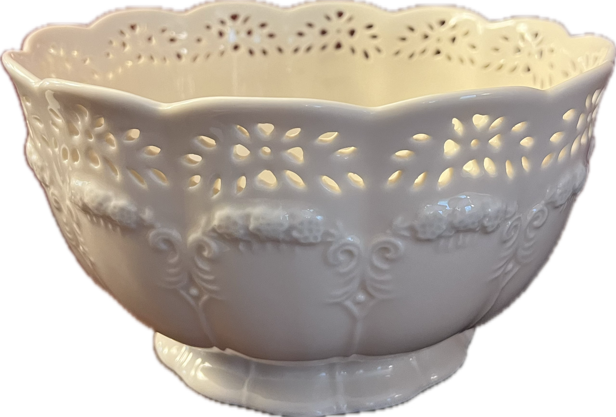 Elevate your dining experience with the Victorian Collection Serving Bowl by Coastline Imports. This cream bowl boasts an embossed design and scalloped edging, while the pierced pattern adds a touch of elegance.